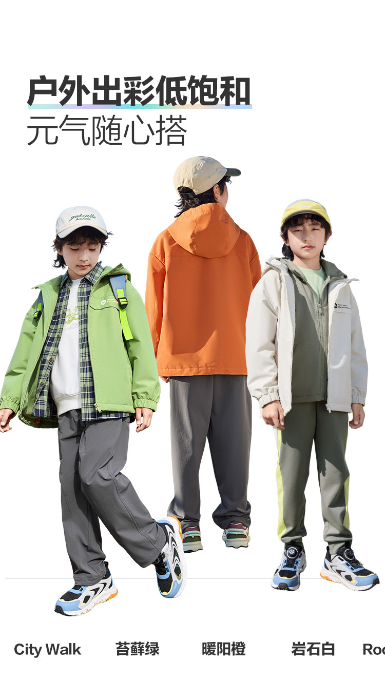 防风透湿户外儿童外套男童春秋装大童连帽防护服青少年休闲童装 871301