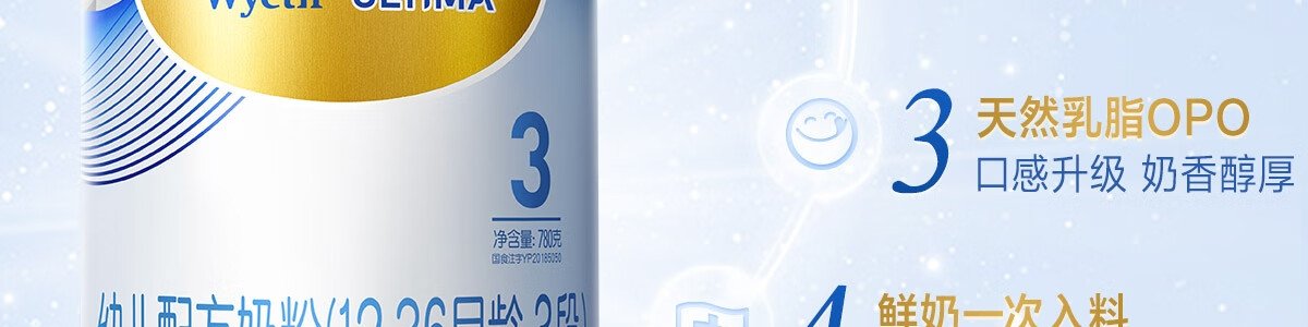 商品名称:惠氏 铂臻幼儿配方奶粉3段 780g 新国标 适合12-36个月