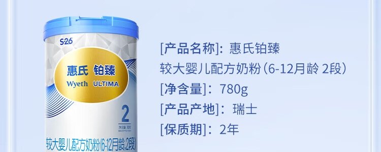 商品名称:惠氏 铂臻较大婴儿配方奶粉2段 780g 新国标 适合6-12个月