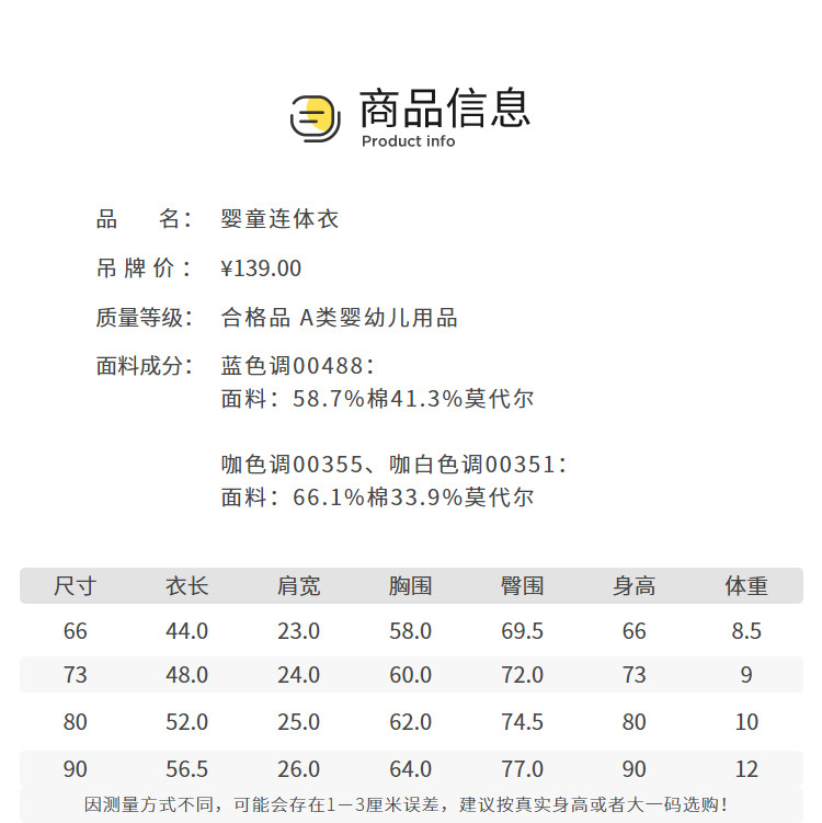 商品名称:婴儿衣服男童连体衣女童包屁衣爬服哈衣宝宝春夏款牛仔工装度假风 565253