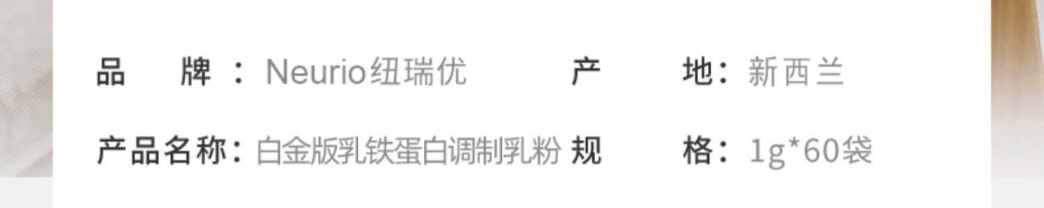 商品名称:纽瑞优(NEURIO)乳铁蛋白白金版60g 新旧包装随机发货