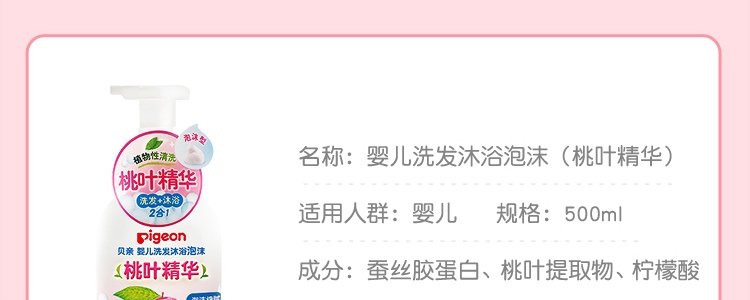 商品名称:日本 贝亲(Pegion)婴儿桃叶精华洗发沐浴泡沫 500ml