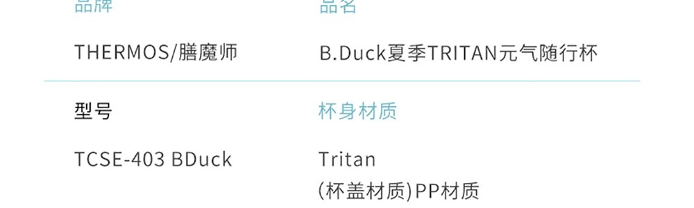 商品名称:日本 膳魔师(THERMOS)B.Duck夏季tritan元气随行杯 TCSE-403 BDGR 蓝黄 430ml