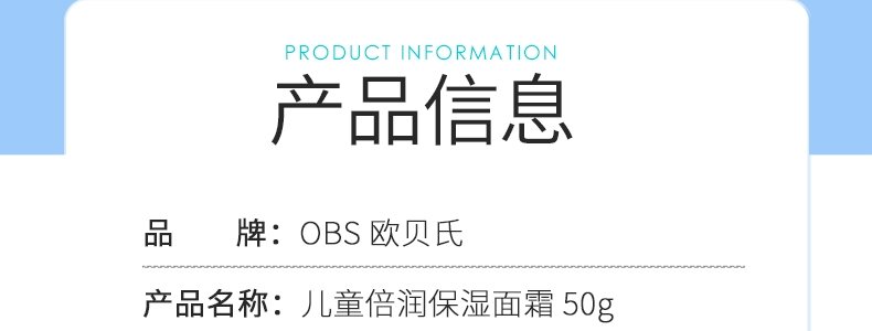 商品名称:欧贝氏 儿童倍润保湿面霜 50g/瓶