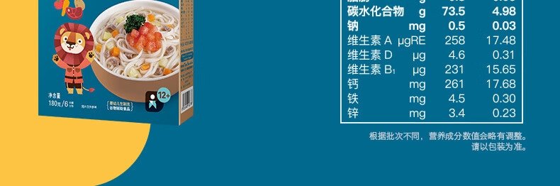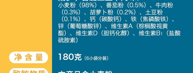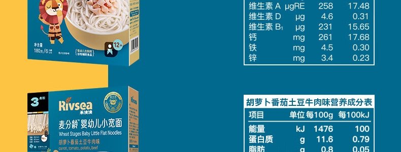 商品名称:禾泱泱(Rivsea)麦分龄婴幼儿小宽面 胡萝卜番茄土豆牛肉味 180g