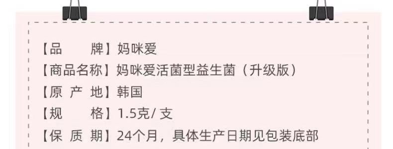 商品名称:韩国 妈咪爱 (OFMOM)二代铂金装婴幼儿益生菌固体饮料1.5g*30袋