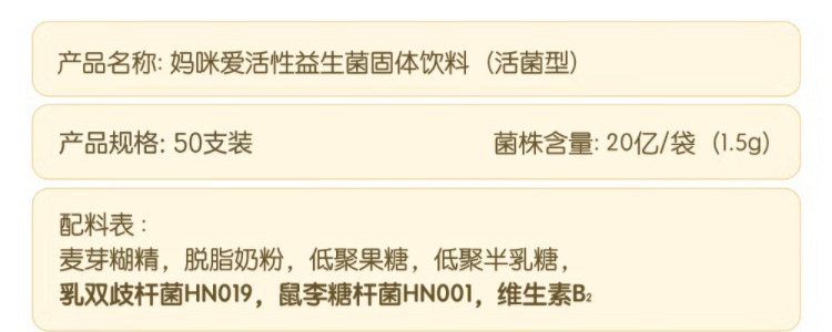商品名称:韩国 妈咪爱 (OFMOM)益生菌1.5g*50袋 包装随机