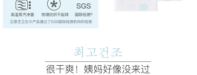 商品名称:韩国 恩芝 (Eun jee)纯棉夜用卫生巾(加长) 330mm 4片/包