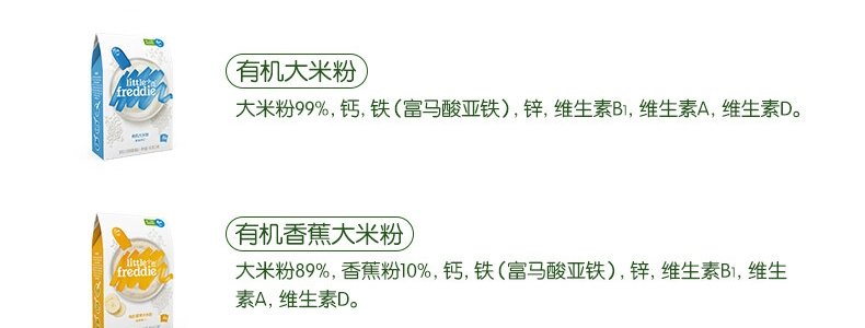 商品名称:英国 小皮(Little Freddie)有机蓝莓香蕉七种谷物米粉 160g 适合7个月以上