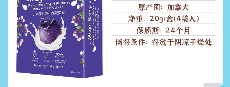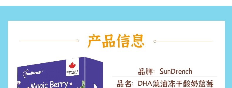 商品名称:加拿大 上哆力(SunDrench)DHA藻油冻干酸奶蓝莓 20g(5g*4)