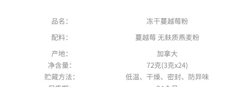 商品名称:加拿大 上哆力(sundrench)冻干蔓越莓粉 72g