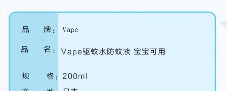 商品名称:日本 未来(VAPE) 驱蚊水防蚊液(粉色款)200ml