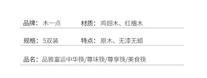 商品名称:木一点 品雅美食筷 礼品装 5双装