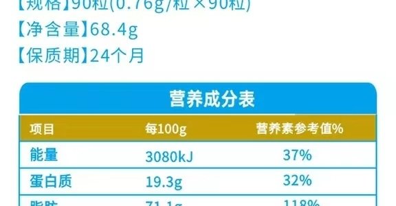 商品名称:加贝爱他 DHA核桃油凝胶糖果 68.4g(0.76g*90)