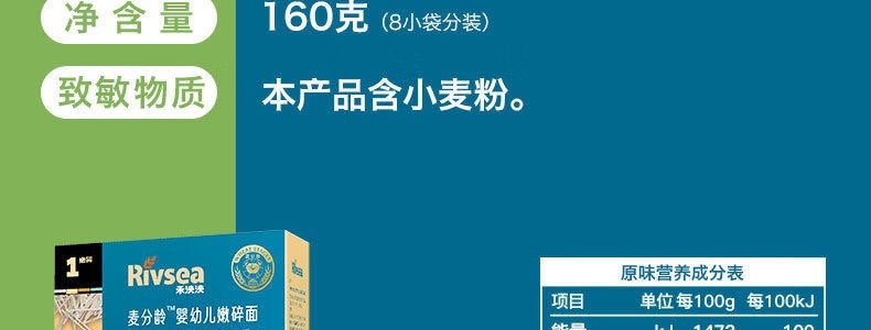 商品名称:禾泱泱(Rivsea)婴幼儿嫩碎面 原味(6月以上)160g