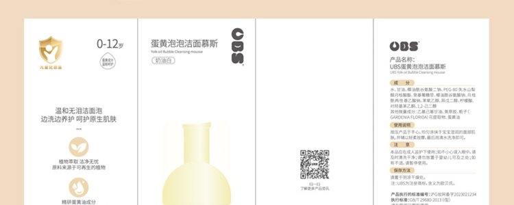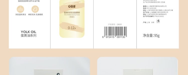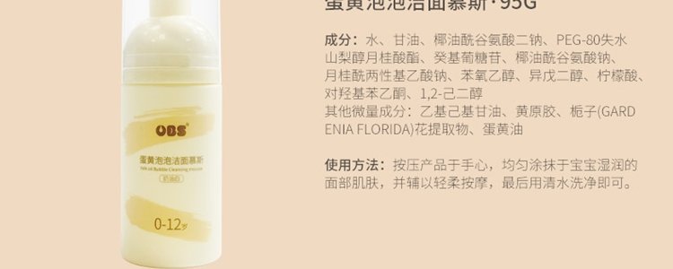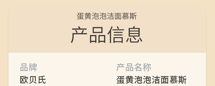 商品名称:欧贝氏 蛋黄泡泡洁面慕斯洗面奶 95g/瓶