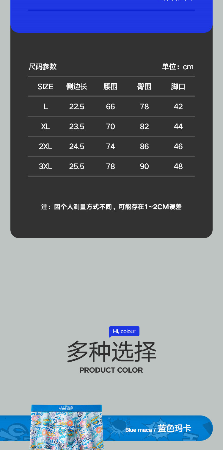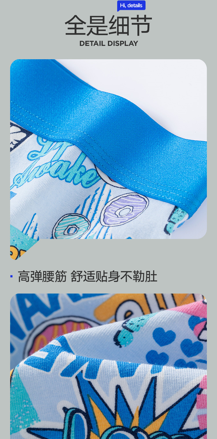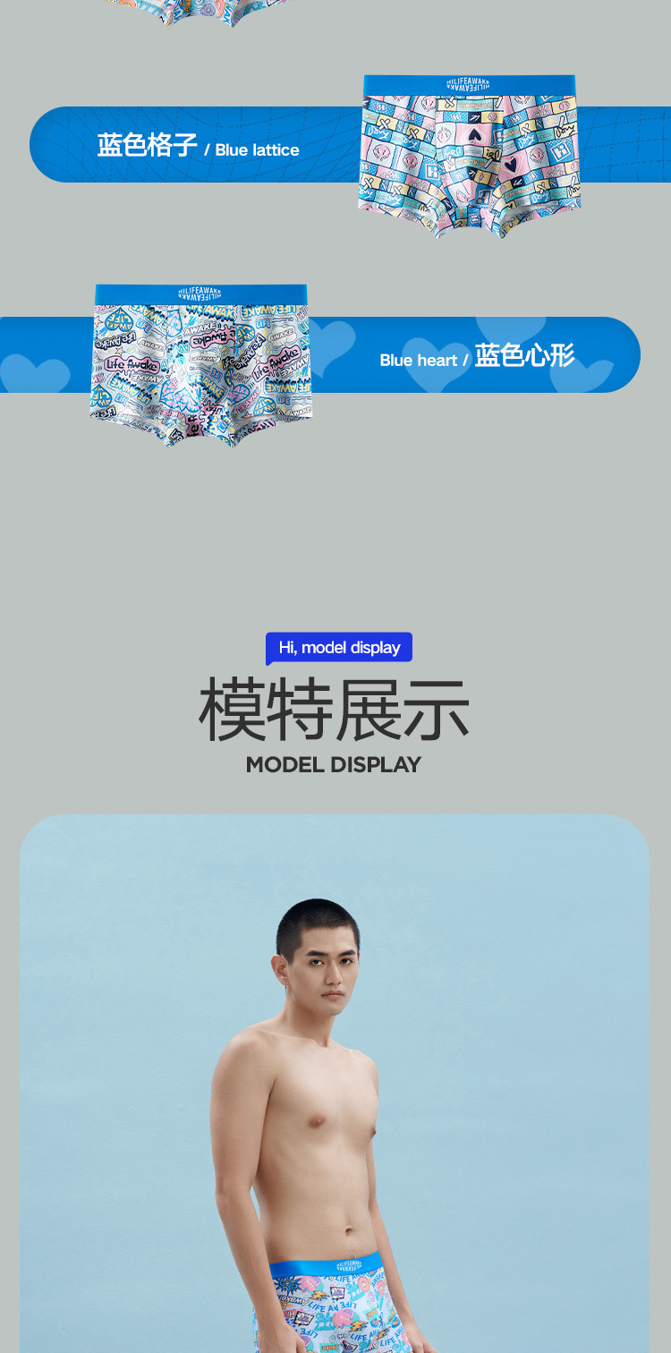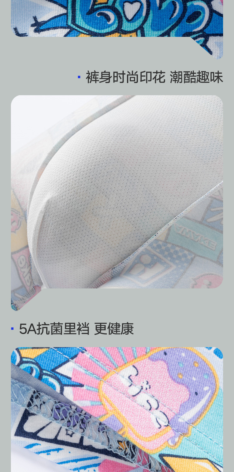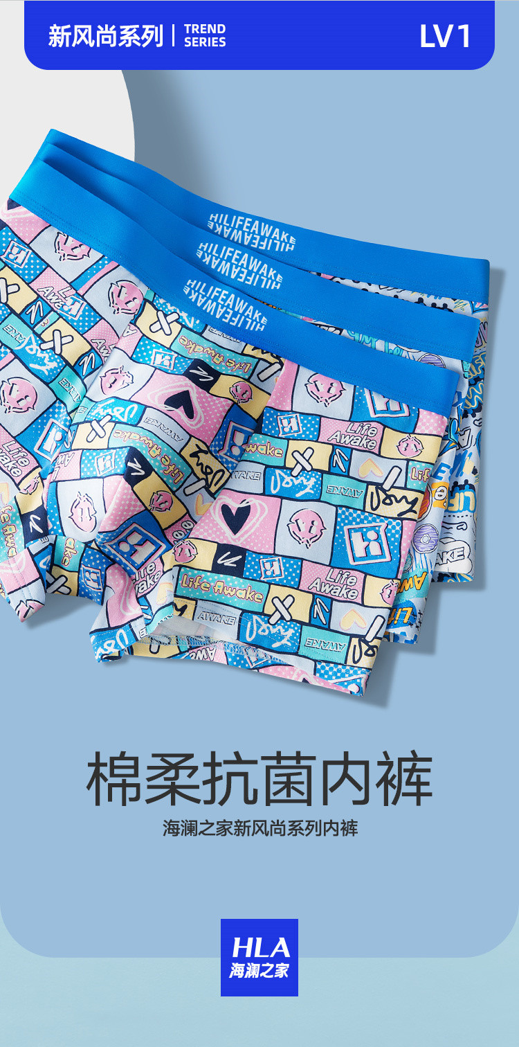 商品名称:【95%棉 5A抑菌】3条装男士平角内裤青年印花透气四角短裤 191066