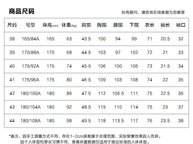 | 尺码 | 衣长(cm) | 肩宽(cm) | 腰围(cm) | 袖长(cm) | 胸围(cm) | 下摆围(cm) | 号型 |