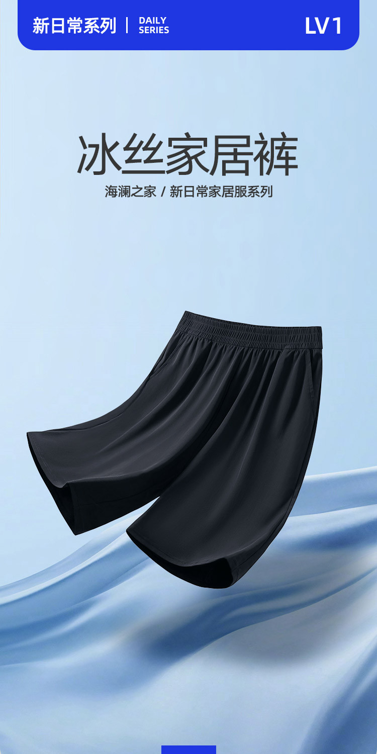 商品名称:【冰丝透气】夏季薄款男士睡裤男家居裤可外穿大裤衩休闲宽松短裤 408666
