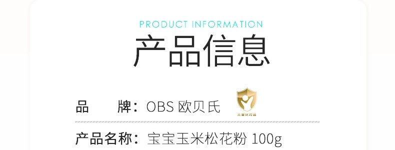 商品名称:欧贝氏 新生儿宝宝玉米松花粉 100g/盒
