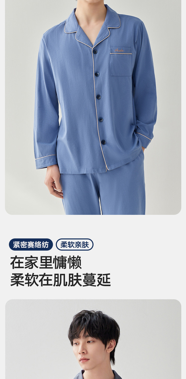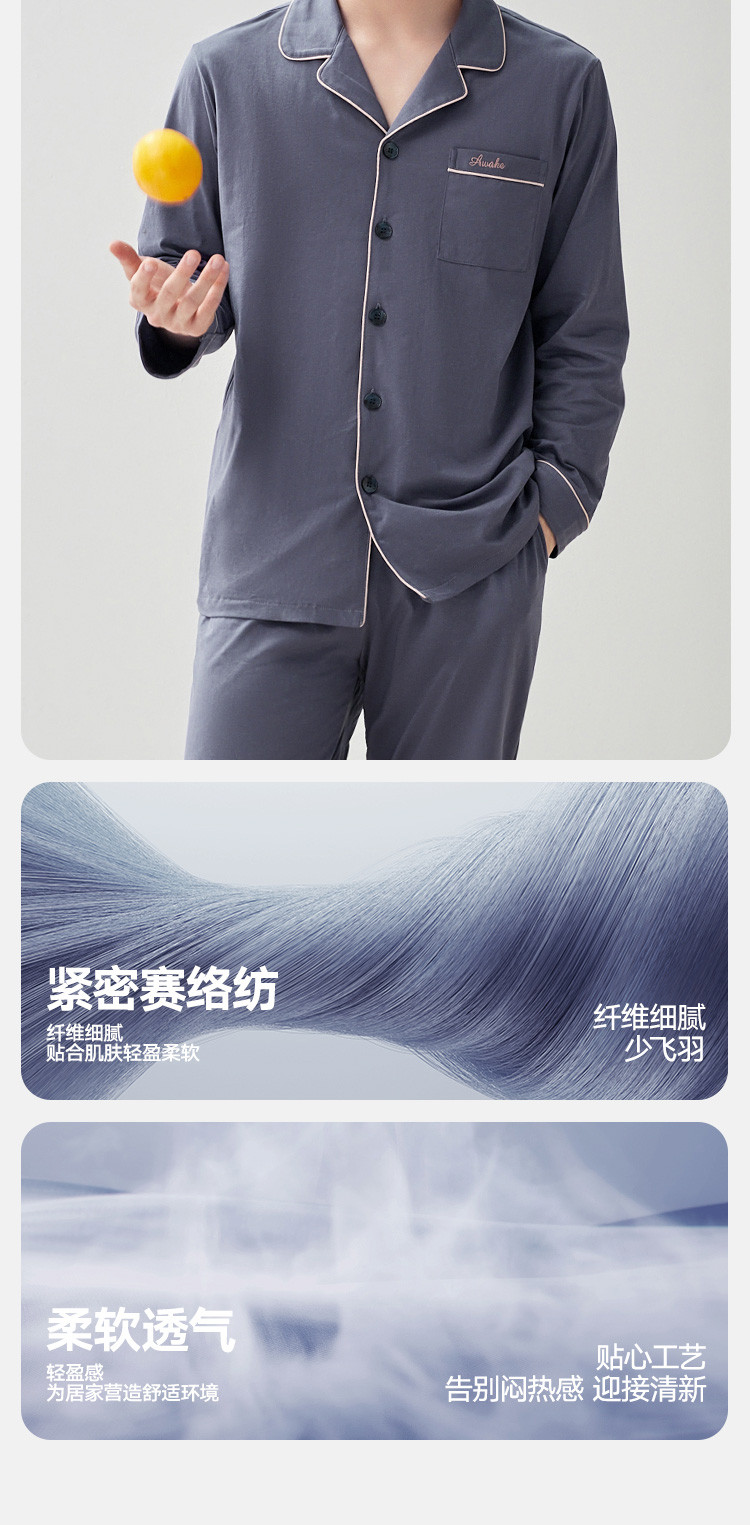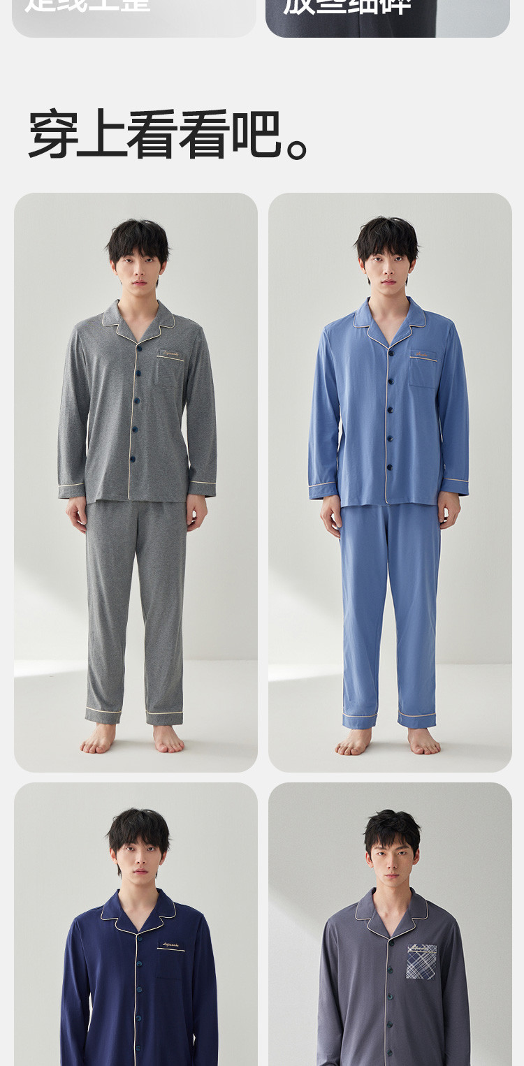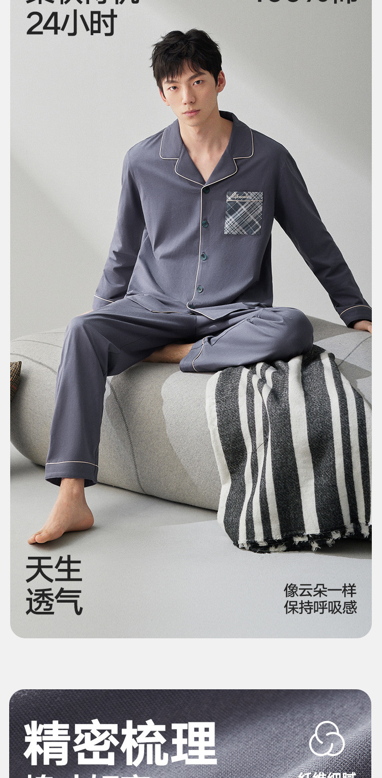 商品名称:【100%新疆棉】纯棉男士睡衣套装春秋高级感休闲家居服男长袖 623578