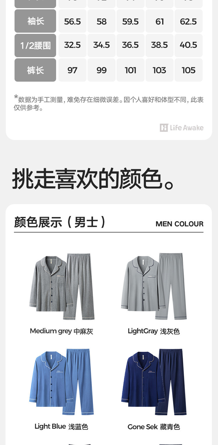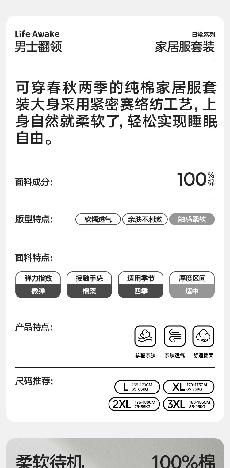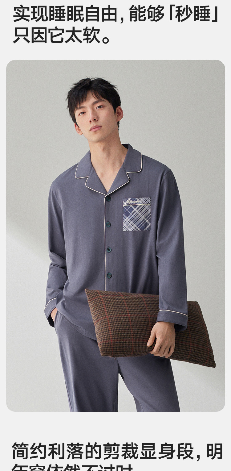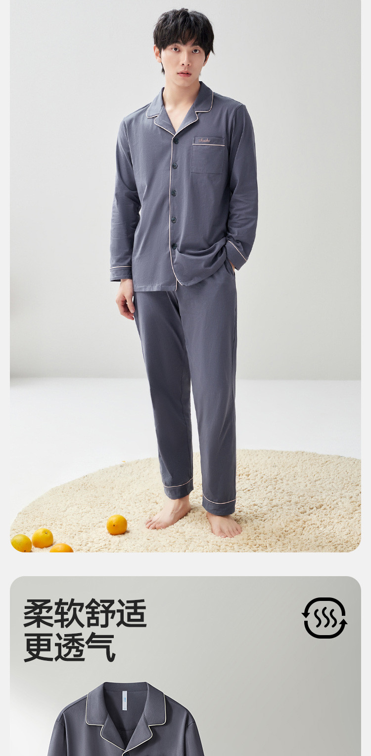 商品名称:【100%新疆棉】纯棉男士睡衣套装春秋高级感休闲家居服男长袖 623578