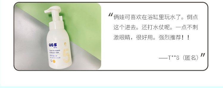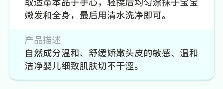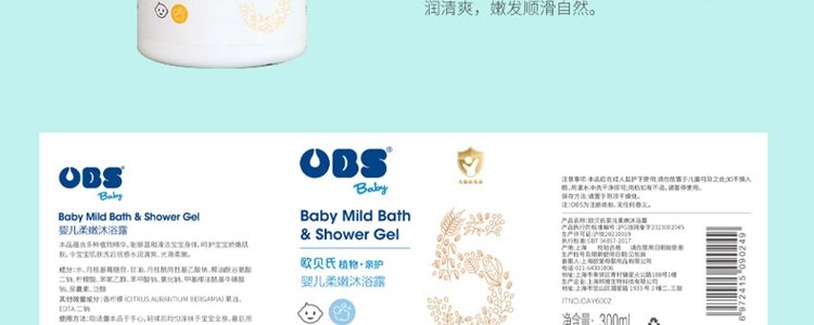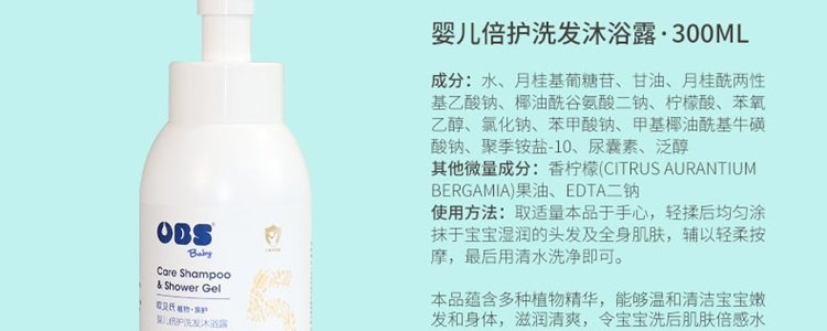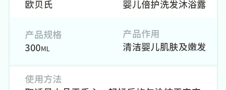 商品名称:欧贝氏 婴儿倍护洗发沐浴露 300ml/瓶(二合一)