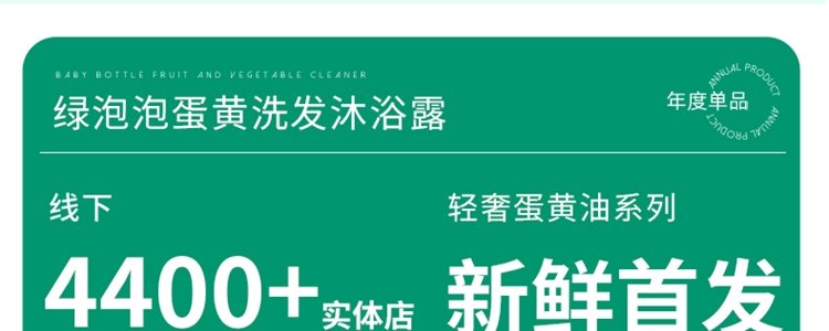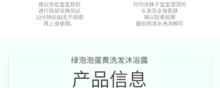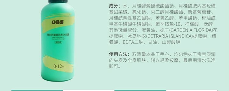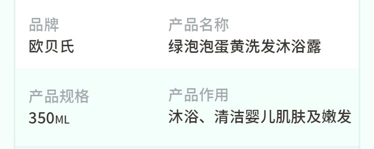 商品名称:欧贝氏 绿泡泡蛋黄洗发沐浴露二合一 350ml/瓶
