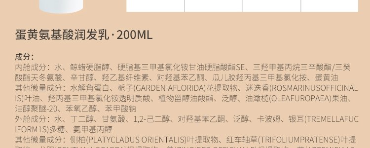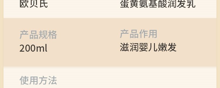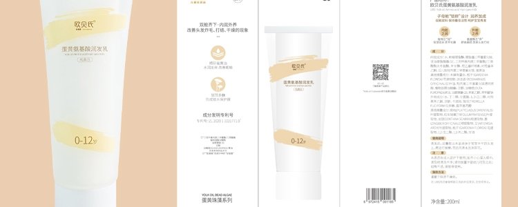 商品名称:欧贝氏 蛋黄氨基酸润发乳护发素 200ml/盒