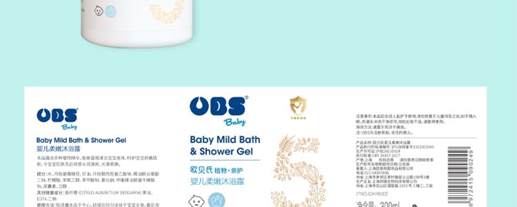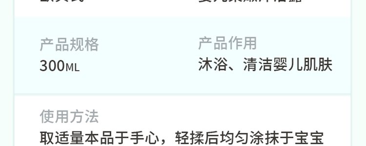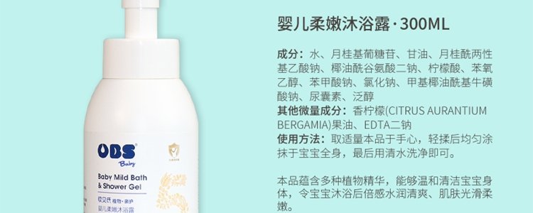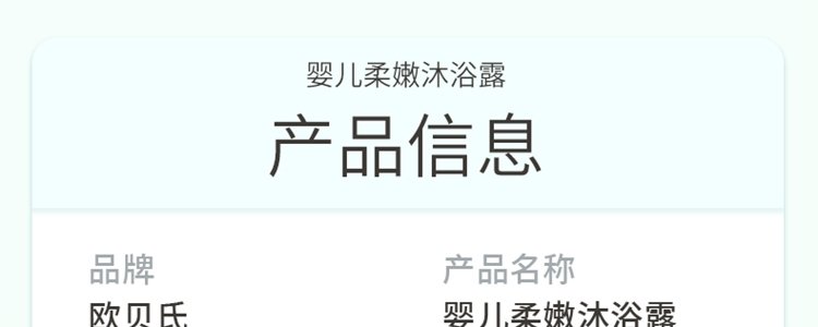 商品名称:欧贝氏 婴儿柔嫩沐浴露 300ml/瓶