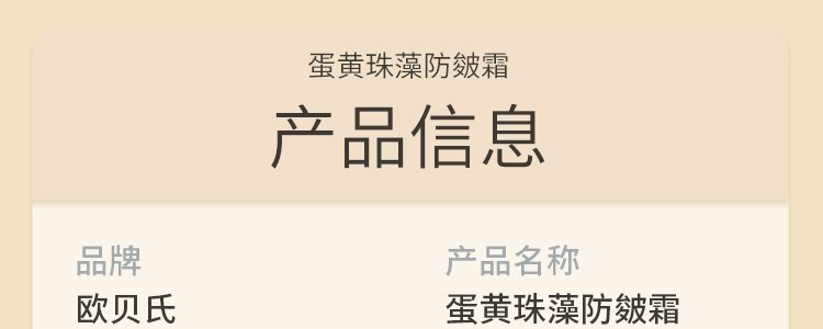 商品名称:欧贝氏 蛋黄珠藻防皴霜 50g/瓶
