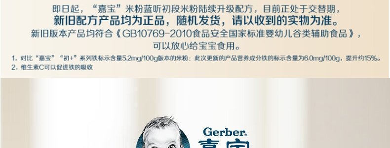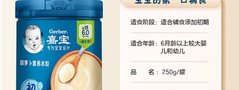 商品名称:嘉宝(Gerber)1段 胡萝卜营养米粉 250g 新老包装随机发货
