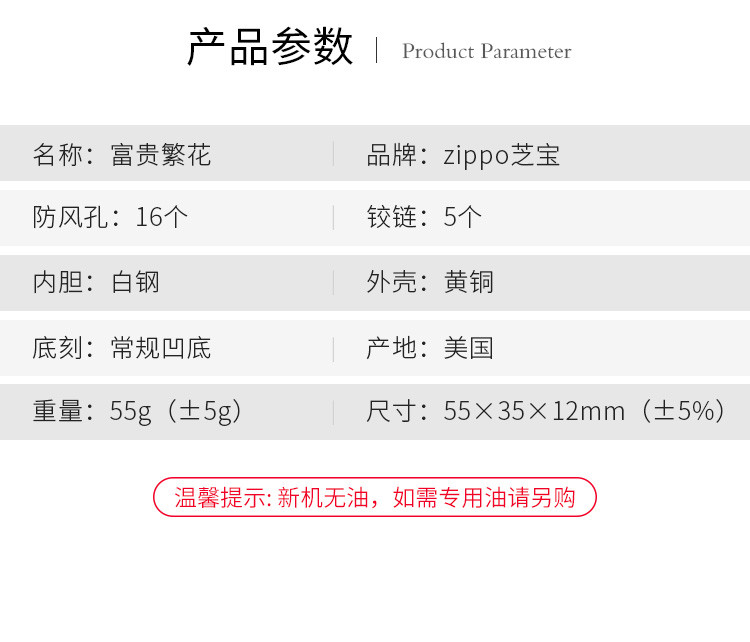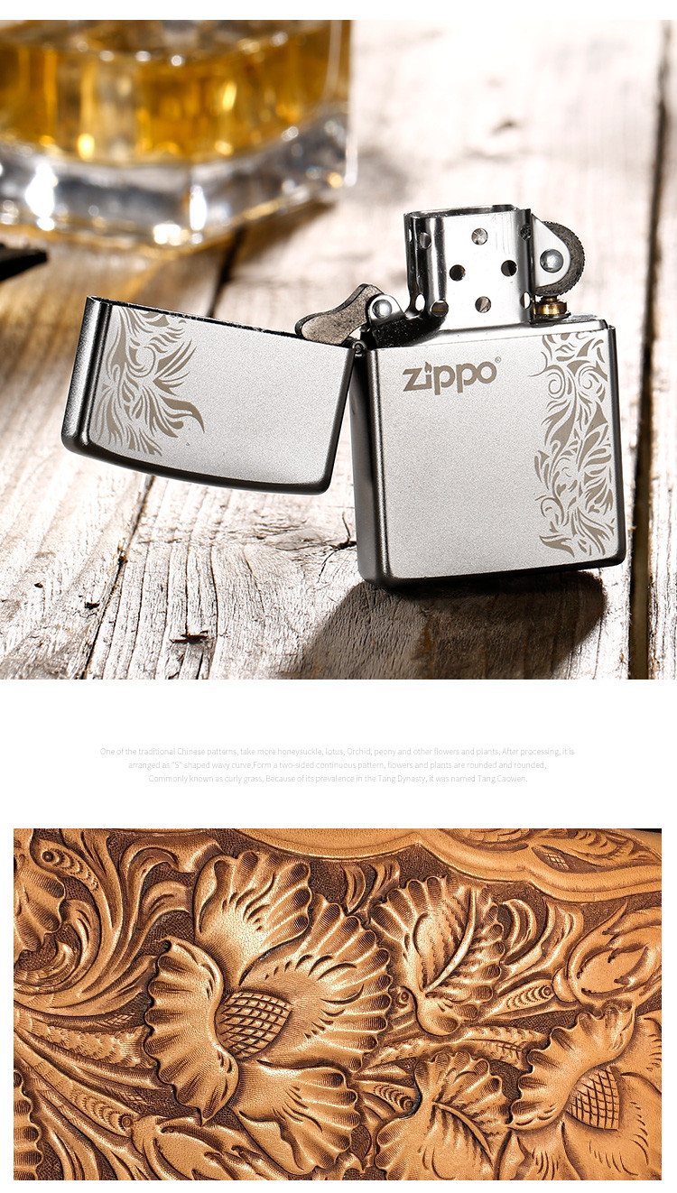商品名称:【人气单品】打火机正版煤油磨砂雕刻富贵繁花套送男友送商务 527006