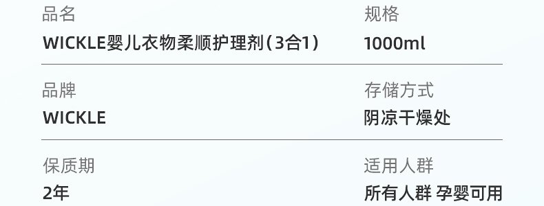 商品名称:惟呵(wickle)婴儿衣物柔顺护理剂(3合1)1000ml