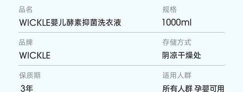 商品名称:惟呵(wickle)婴儿酵素抑菌洗衣液 自然香型 1000ml