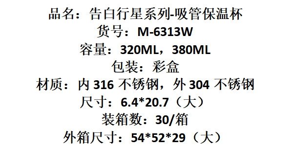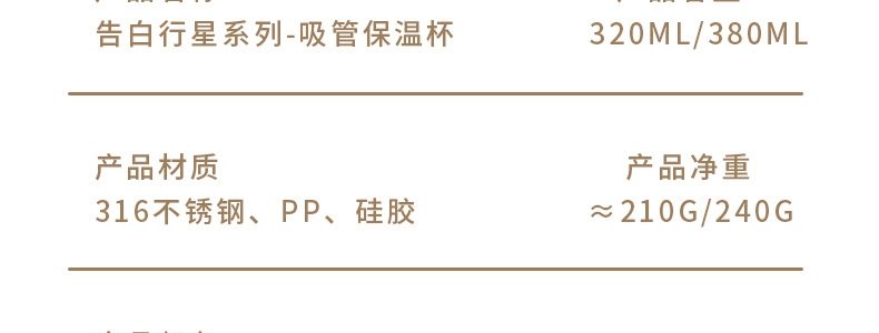 商品名称:小茶日记 告白行星系列吸管保温杯 风信紫 320ml