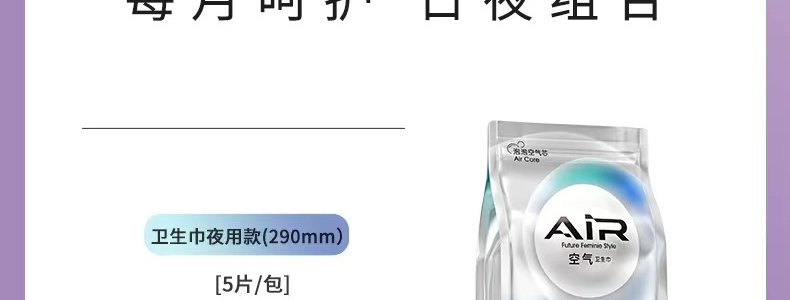 商品名称:元気小猪 夜用空气卫生巾 5片*24包