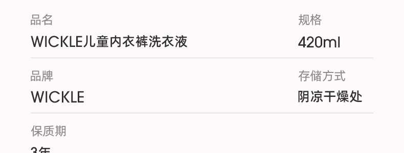 商品名称:惟呵(wickle)儿童内衣裤洗衣液 420ml