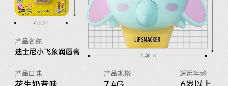 商品名称:LiP SMACKER 迪士尼小飞象润唇膏 花生奶昔味 6岁+ 7.4g