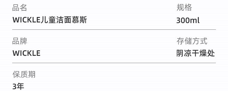 商品名称:惟呵(wickle)儿童洁面慕斯 300ml