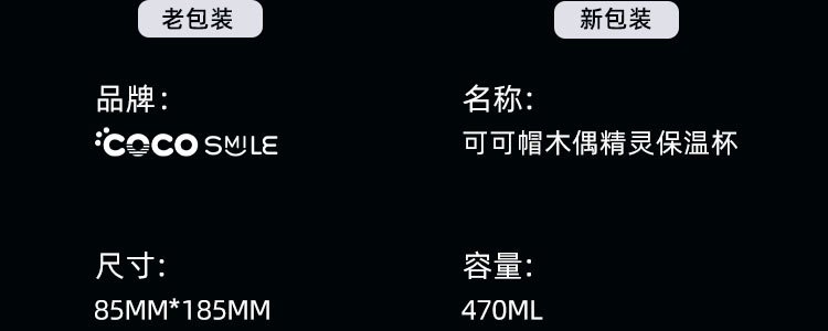 商品名称:可可猫(Coco smile)木偶精灵A直饮保温杯 粉色 470ml 新老款式随机发货