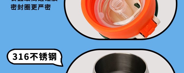 可可猫(Coco smile)可可恐龙吸管圆杯 绿色 630ml
