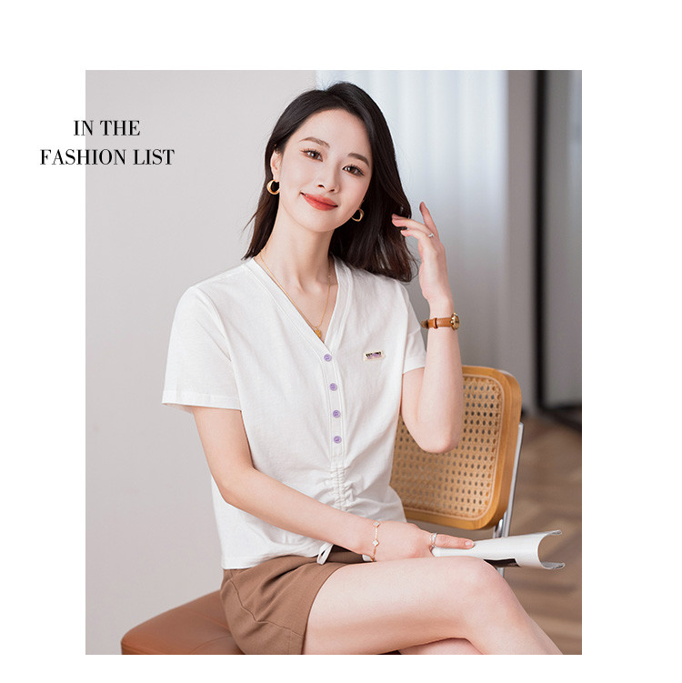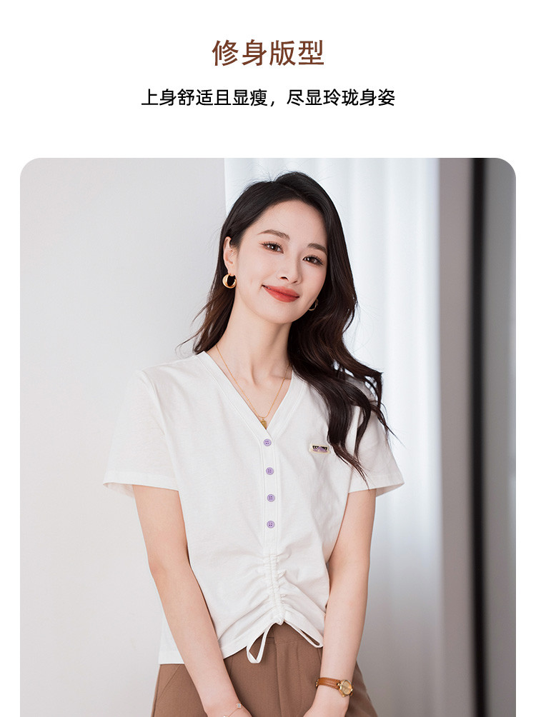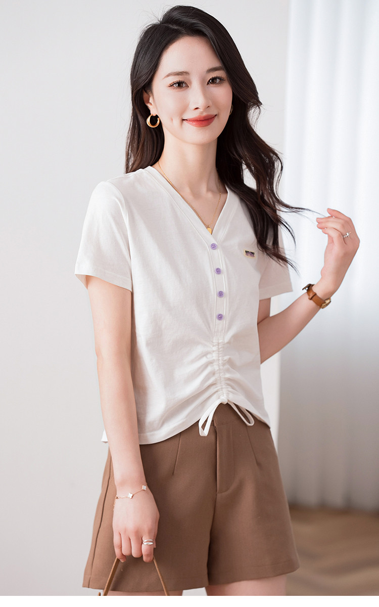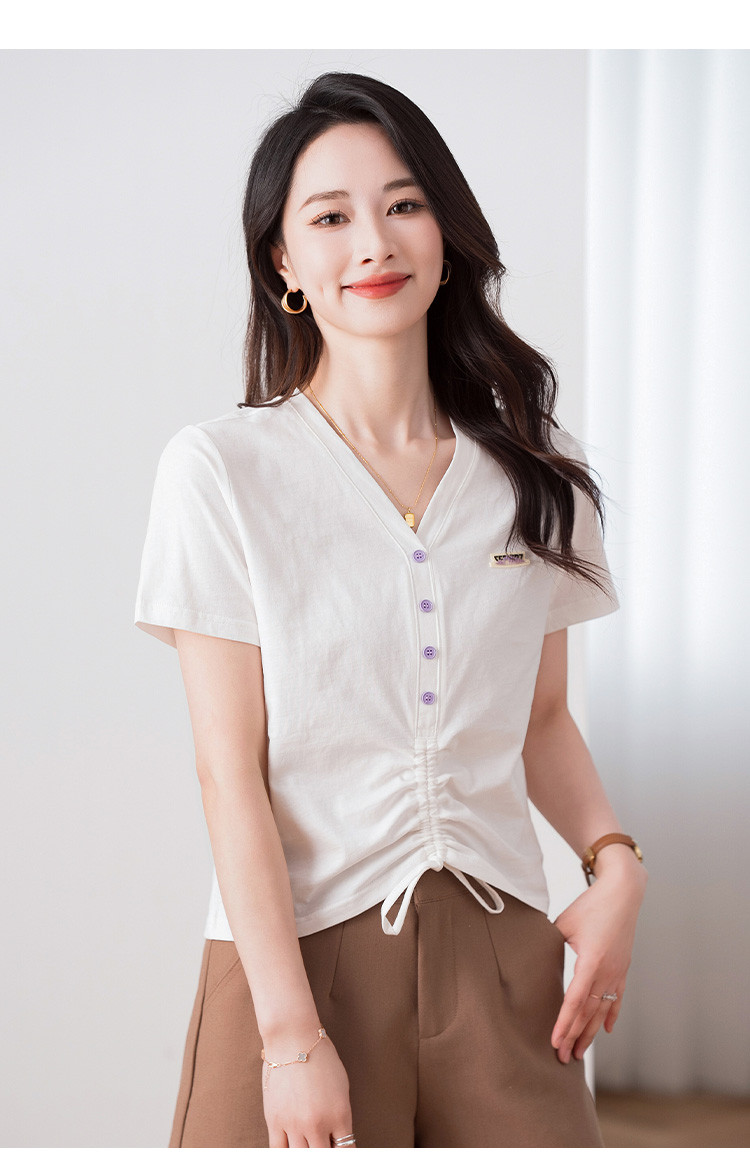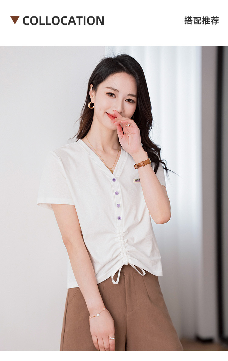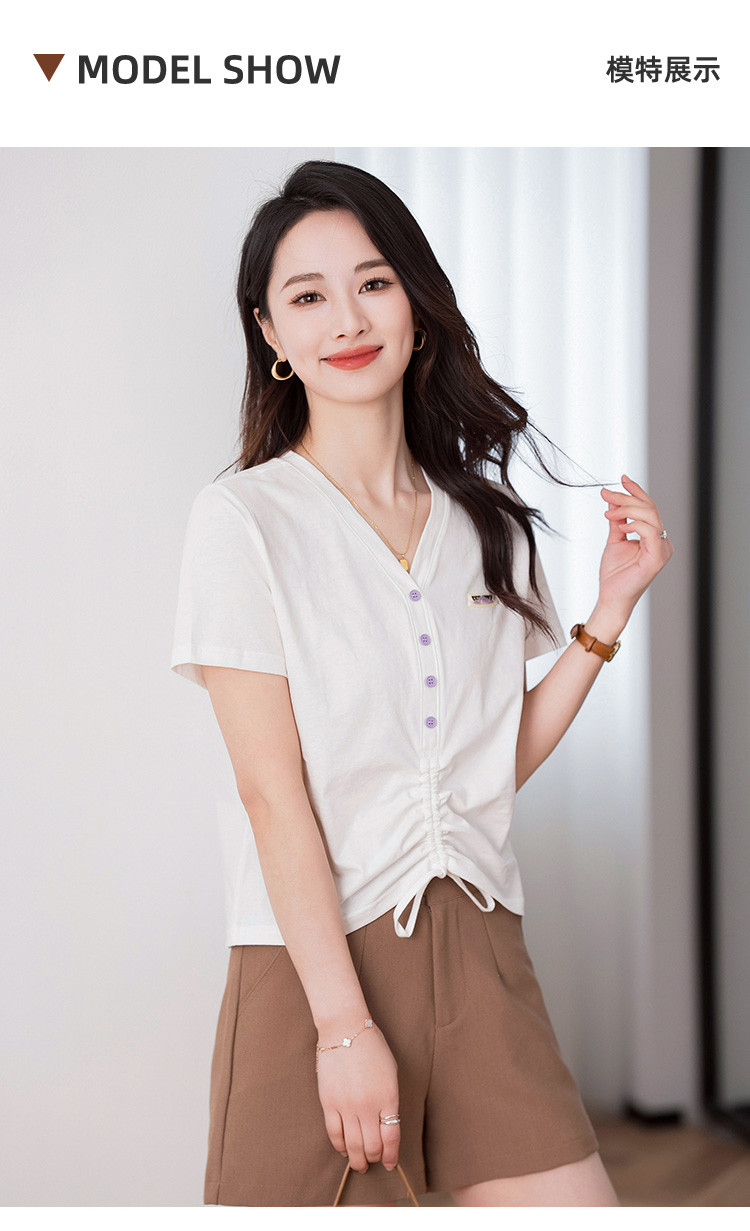 商品名称:夏季辣妹装抽绳V领休闲短袖t恤女显瘦舒适百搭短款女上衣ins潮 967704