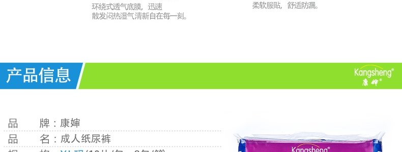 商品名称:康婶 茶爽祛味成人纸尿裤 XL10