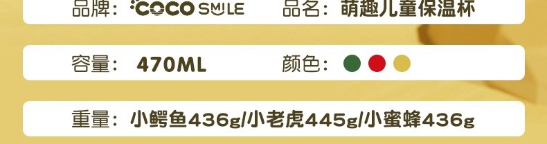 商品名称:可可猫(Coco smile)动物世界直饮保温杯 绿色 470ml