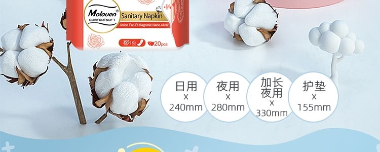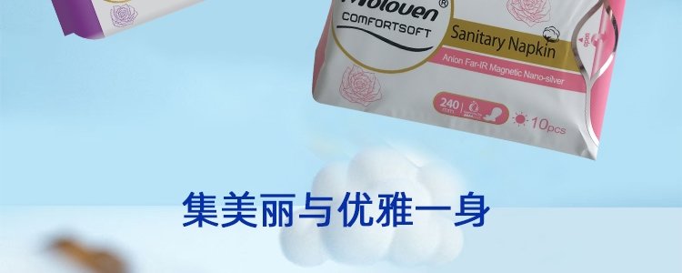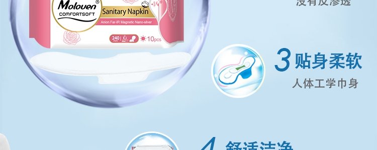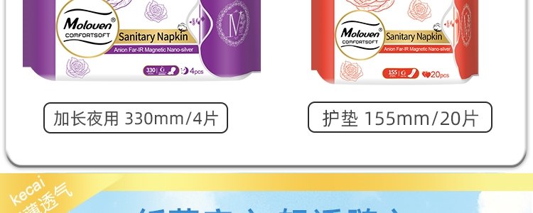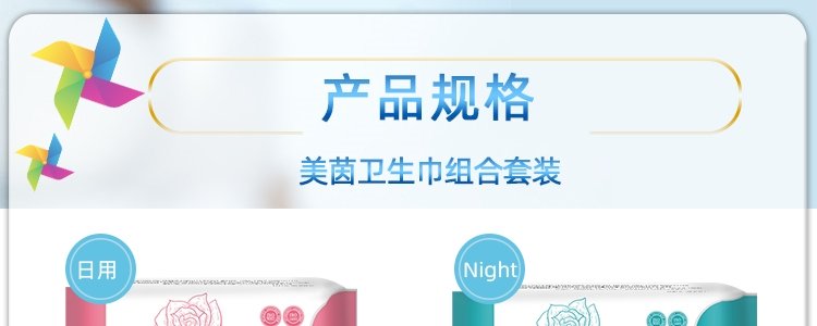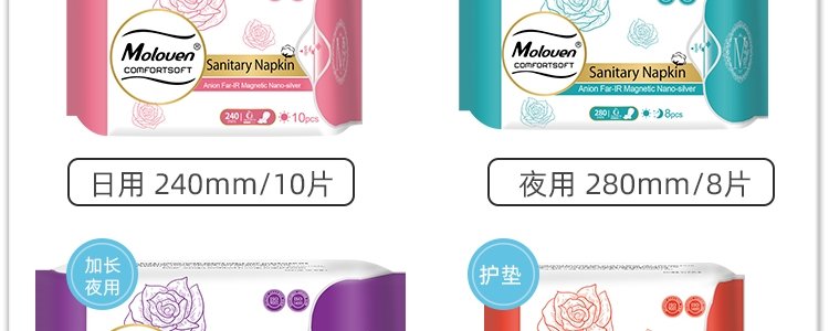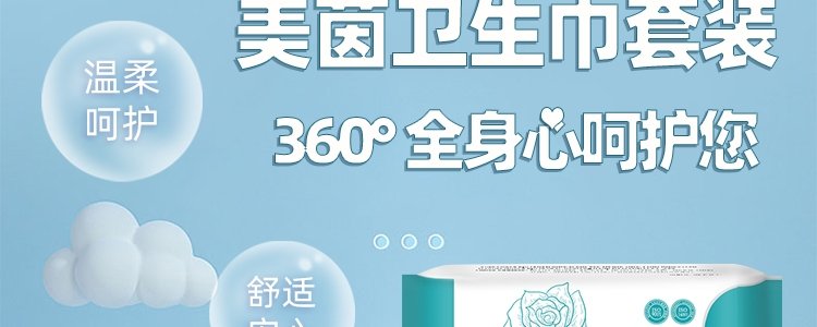 商品名称:美茵(Moloven)玫瑰款卫生巾套盒 日用*2+夜用*2+加长*1+护垫*1