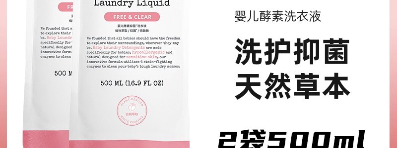 商品名称:惟呵(wickle)宝宝专用去污抑菌酵素洗衣液(替换装)桃桃香 500ml*2袋