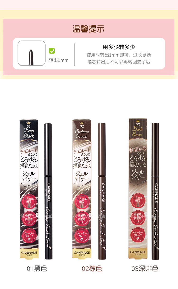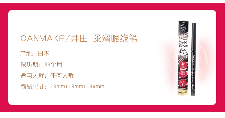 商品名称:CANMAKE/井田 柔滑眼线笔 #01黑色 #02棕色 #03深咖色