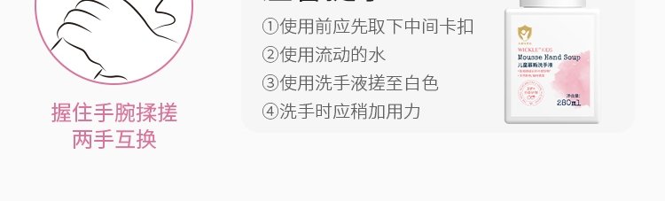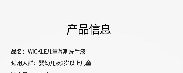 商品名称:惟呵(wickle)儿童慕斯洗手液 280ml