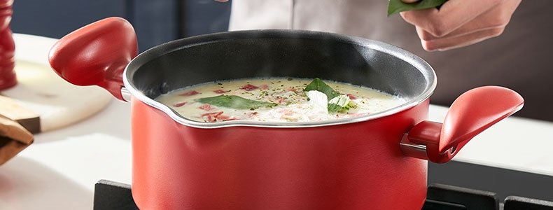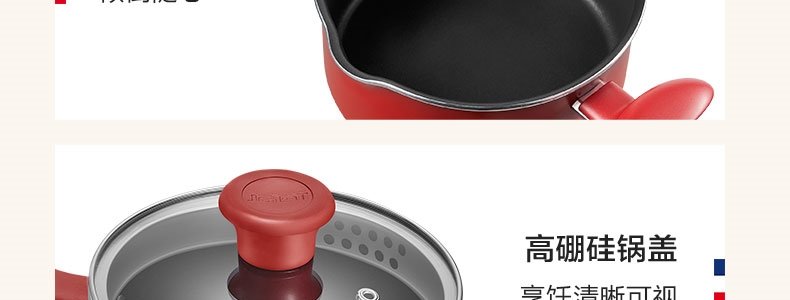 特福(TEFAL)美食家系列不粘汤锅 烈焰红 20cm+玻璃锅盖
